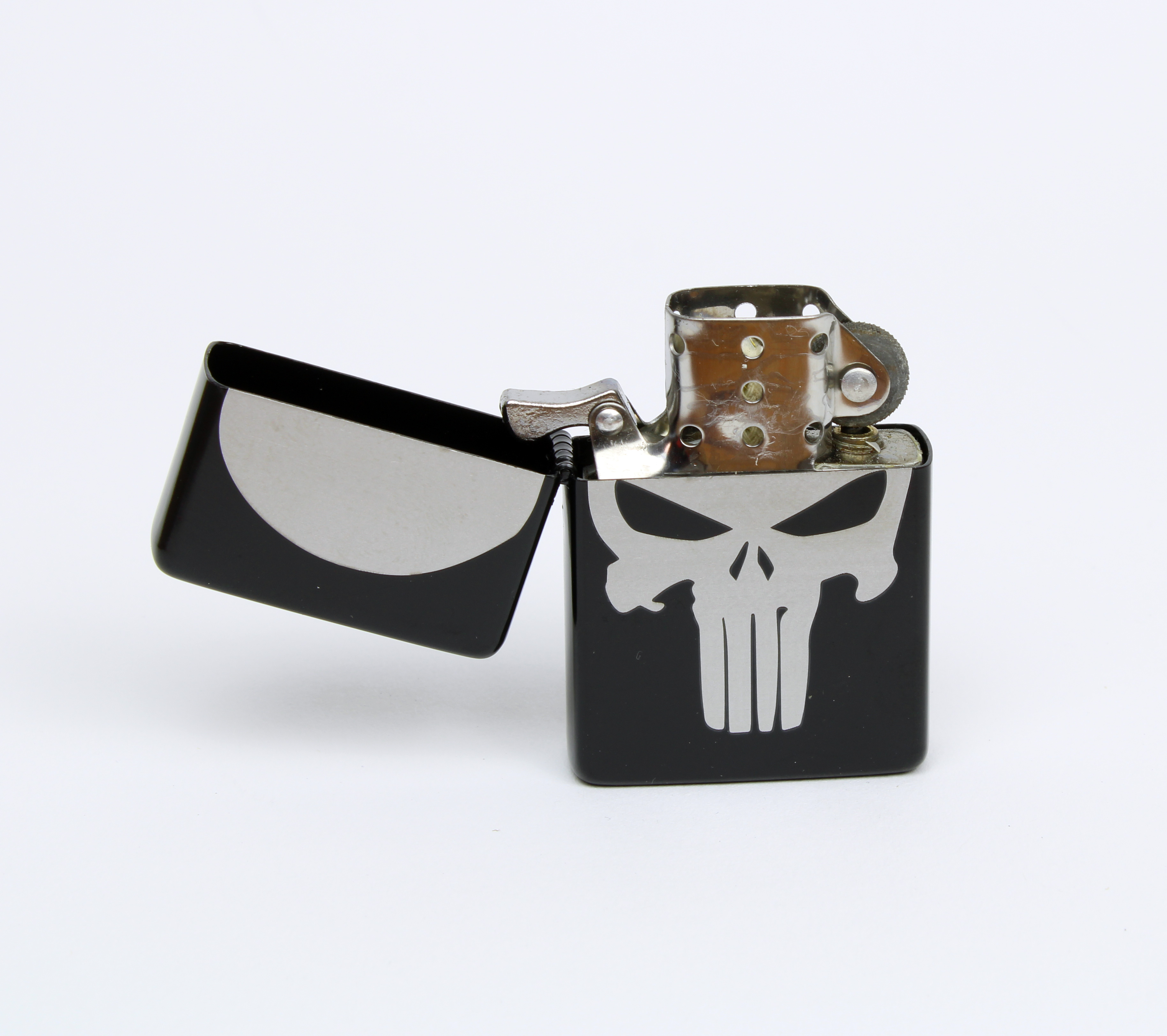 Petrol storm lighter with Punisher motif.